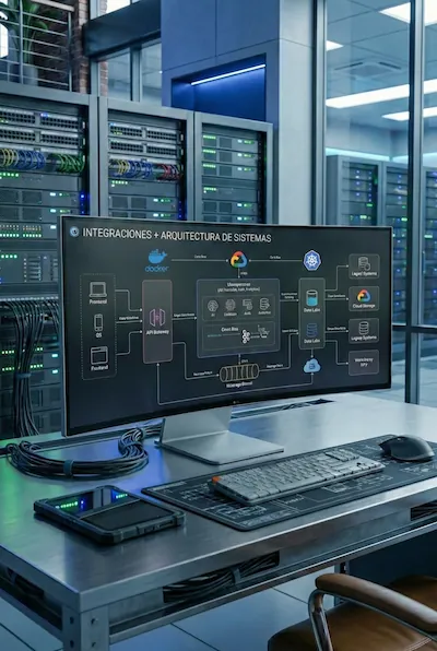 Qué es: Conectamos tus sistemas para que hablen entre sí (ERP, CRM, contabilidad, e-commerce, RRHH, etc.). La mayoría de procesos manuales existen porque "el sistema A no habla con el sistema B". Resolvemos eso con integraciones robustas, APIs y arquitecturas escalables.